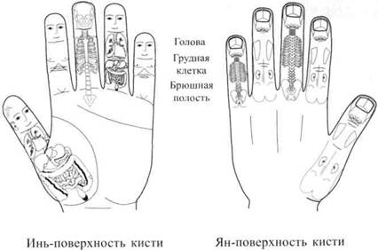 Поскольку, как уже доказано, на кистях и стопах находятся миниатюрные проекции тела человека, семянотерапию можно проводить, воздействуя не только на пораженные участки тела, но и на точки (зоны) их соответствия, расположенные на кистях и стопах. Данный метод очень результативен. Его применение часто дает более сильный и быстрый эффект, чем использование только локальных точек.